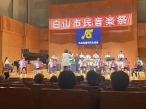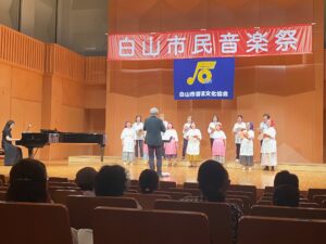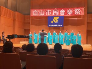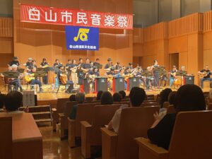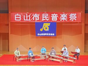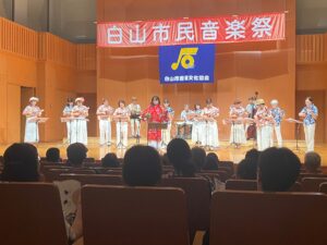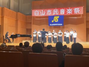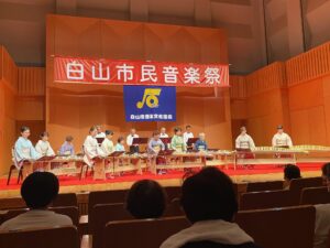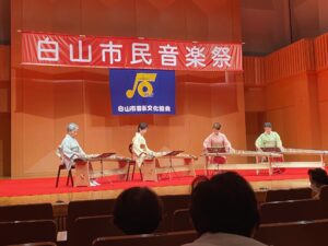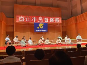 第54回白山市民音楽祭が、9月28日(日)に邦楽の部、10月5日(日)に洋楽の部が、白山市学習センターコンサートホールにて開催され、邦楽の部では、9曲の箏曲や尺八の演奏が披露されました、また、洋楽の部では、賛助出演の蕪城っ子リードアンサンブルをはじめ、7団体による、演奏・合唱が披露され、多くの市民の皆さんに楽しんでいただきました。
