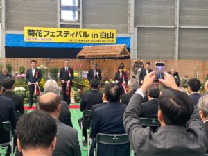 令和7年10月27日(月)松任総合運動公園屋内競技場において、令和7年度菊花フェスティバルin白山の開場式が行われ、11月9日(日)までの2週間菊花展が開催されています、綺麗な作品が数多くありますので、ご覧くださいませ、お待ちしております。